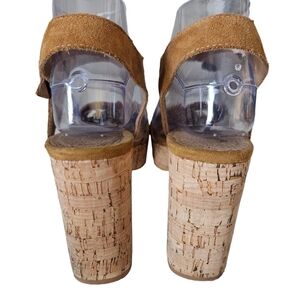 Free People Womens Brook Platform Cork Black Suede Open Toe Taupe Sz 10
