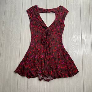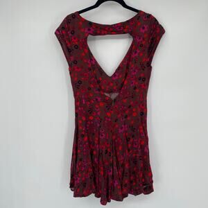 Free People Women’s Brown Red Pink It Takes Two Wrap Bodice Dress Size Small