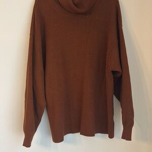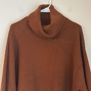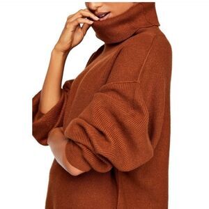 Free People Women’s Brown Soft Oversized Turtleneck softly Sweater tunic SM EUC!