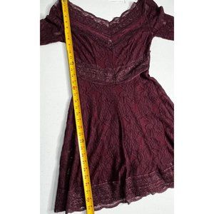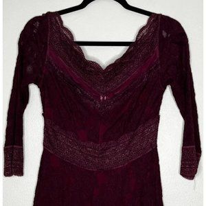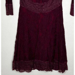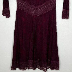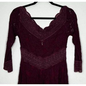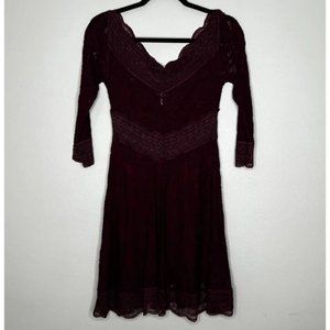 Free People Womens Burgundy Red Lace Dress Size Small Off The Shoulder Boho