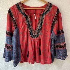 Free People Women's But I Like It V Neck Tasseled Boho Bohemian Top Sz Small