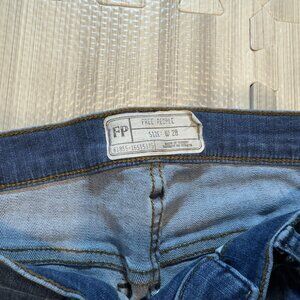 Free People Women's Button Fly Fray Mid Rise Distressed Jeans