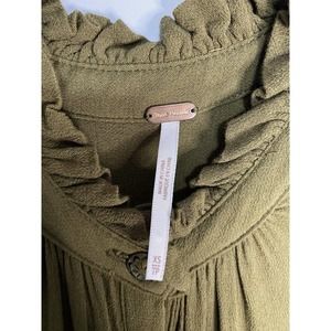 Free People Women’s Button Up Tunic Dress W/ Slip Long Sleeve Size XS Army Green