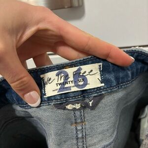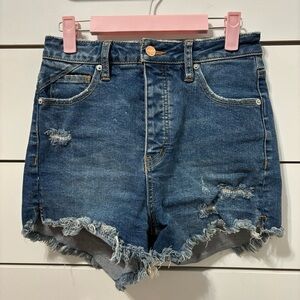Free People Women’s CRVY Vintage Frayed Hem High Rise Shorts Lolita Blue item is in used, preloved condition size 26 **small spots on the front**