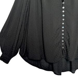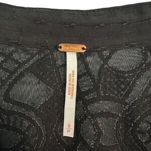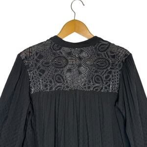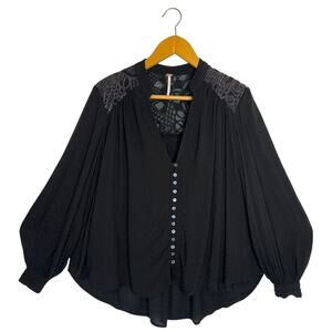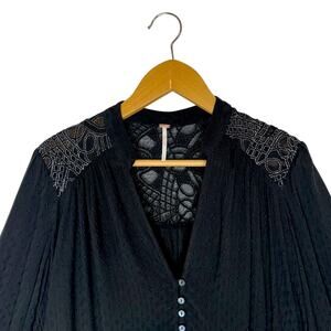 Free People Women's Canyon Rose Button Down Top Size S Black Boho Embroidered