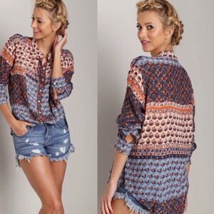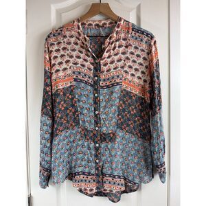 Free People Women's Caravan Patchwork Printed Button Front Shirt Size XS