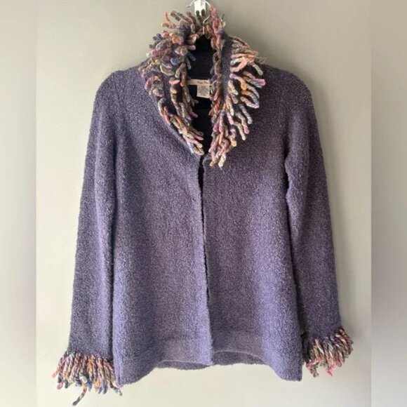 Free People Womens Cardigan Ruffle Fringe Size M Hook & Eye Purple Fringe, wool