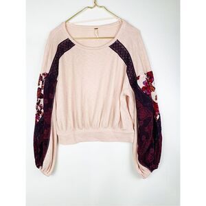 Free People Women's Casual Clash Blouse Top Floral Balloon Sleeve Pink Red XS