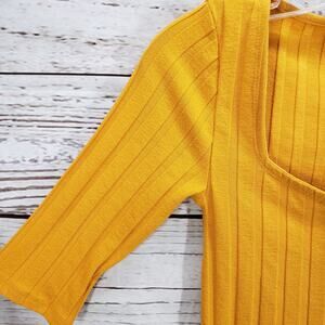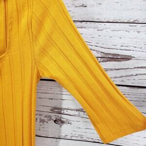 Free People -Women's Central Park Golden Yellow Ribbed Stretch Top Cardigan Size Extra Small. Polyester, spandex fabrics. Approx. measurements pit to pit 12 in. Sleeve length 13.5 in. Top length 21 in. Pre-owned in good condition, no visible flaws.
