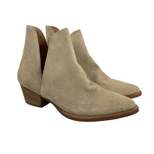 Free People Womens Charm Double V Camel Suede Slip On Ankle Booties Size 7