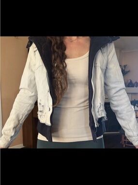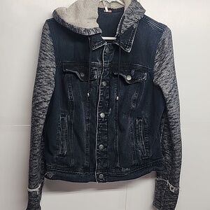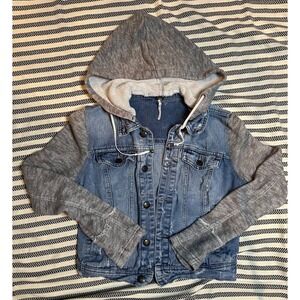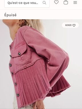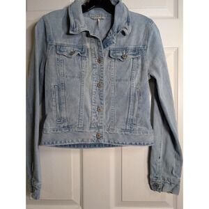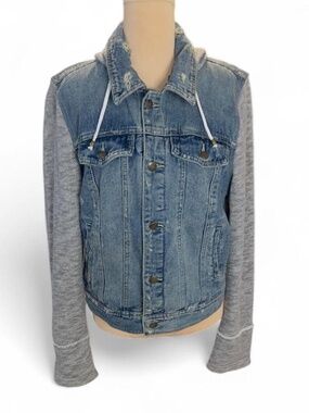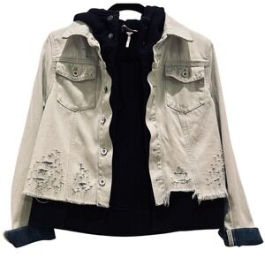 •Style: Cropped denim jacket with a raw, unfinished trim hem