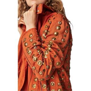 Free People Women’s Chelsea Coin Moto Jacket in the Size Medium in Brick Orange