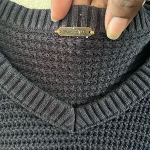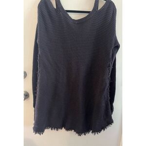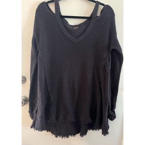 Keywords: Free People, cold shoulder, sweater, women's clothing, gray, V-neck, long sleeve, cotton, knit, fall fashion, casual wear, relaxed fit, pre-owned.