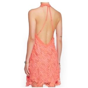Free People Womens Coral Lace Overlay Halter Top Mini Dress SZ Petite S. Condition is Pre-owned. Shipped with USPS First Class.