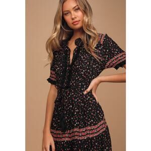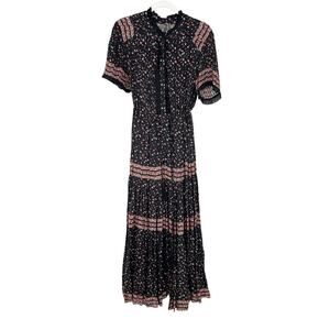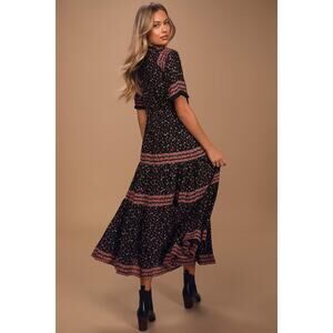 Free People Womens Cottagecore Prairie Rare Feelings Ditsy Floral Maxi Dress in Black. Size Small