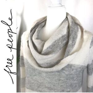 Free People Women's Cream Gray Stripe Alpaca Blend Cowl Neck Sweater Small Petite