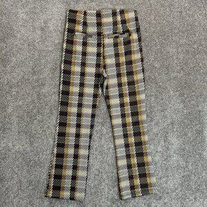 Free People Women's Cropped Pants Size 6 Brown Yellow Side Zip Back Pockets EUC – Polyester/Rayon/Cotton/Spandex