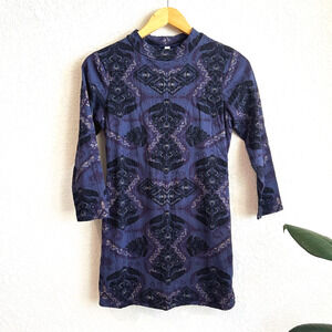 Free People Womens Cute N Cozy Bodycon Dress Small Long Sleeve Cut Out Mock Neck