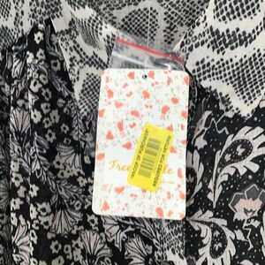 Free People Women’s Dani Button Down Sheer Top Blouse Black/White NWT Size XS