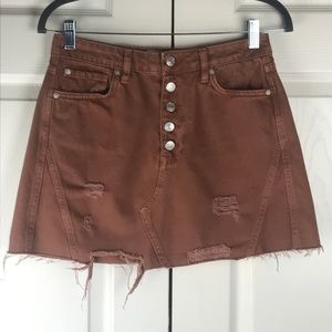 Beautiful Free People Womens Denim A Line Skirt Mini Bronze Brown