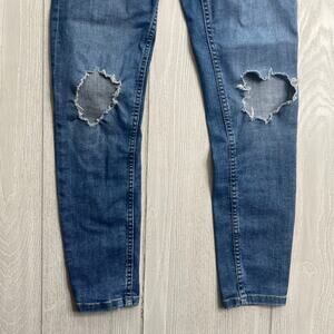 Free People Women's Denim Blue Busted Knee Skinny Jeans Size 26