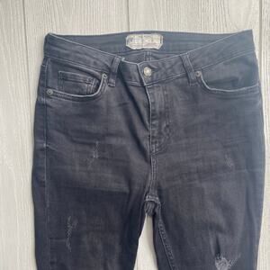 Free People Women's Denim Great Heights Black Frayed Raw Hem Skinny Jeans Size 26