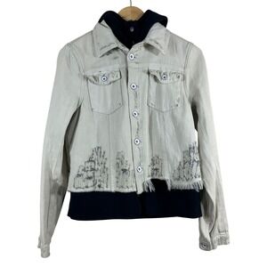 Free People Women's Denim JeanJacket Hooded Distressed Terry Lined Size S