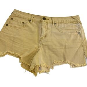 Free People Womens Denim Shorts Distressed Sun Tan Mustard Size 30