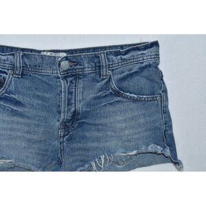 Free People Women's Denim Shorts Size W27 Button Fly Blue Raw Hem Distressed 3"