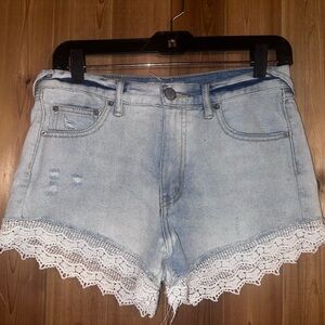 Free People Women's Denim Shorts with Lace Trim Size 27
