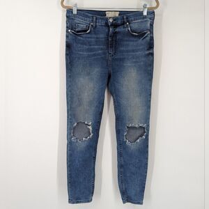 Free People Women's Distressed Knee High Waist Rise Medium Wash Skinny Jeans 31R