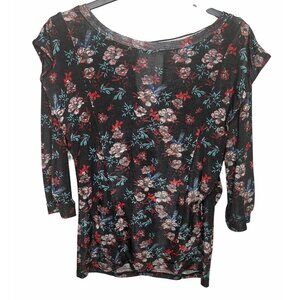 Free People Womens Dock Street Black & Red Boho Floral Ruffle Top Size Large