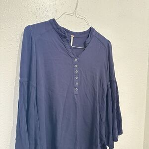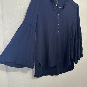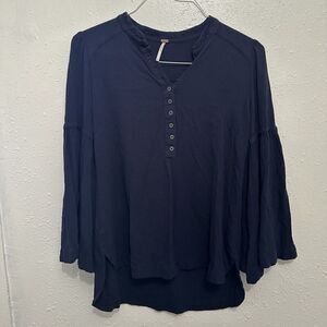 Free People Womens Easy Girl Bell Sleeves Peasant Top Navy Size Small Boho
