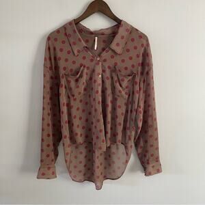 Free People | Women’s Easy Rider Copper Brown Button Down Blouse Polka Dots Shirt
