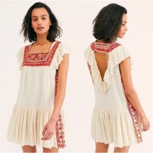 Free People Women's Embroidered Day Glow Dress Ivory Multicolor Size S Small