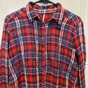 Free People Women’s Embroidered Flannel Size Small Red Blue