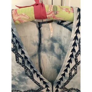 Free People Womens Embroidered Tie Dye Tunic Sz M Blue White