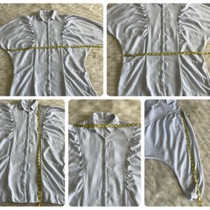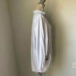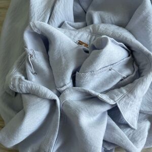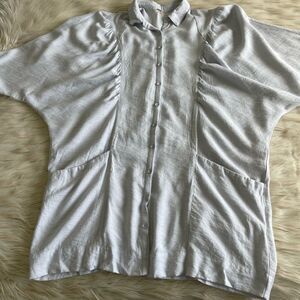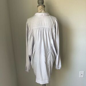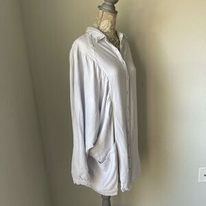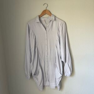 The Fade Away Shirt Dress by Free People in Purple Ice (a greyish blue color). Button front closure. Two front drop pockets. Dolman sleeves. Gently worn with no visible flaws.