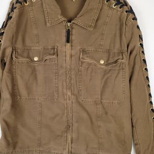 Free People Womens Faye Canvas Military Jacket Size Small Green Zip Up Lace Up