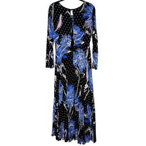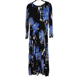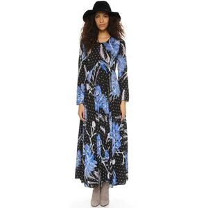 Free People Women's First Kiss Maxi Dress Botanical Night Long Sleeve Flowy M