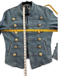 Free People Women's Fitted Military Denim Jean Jacket Indigo Blue Size Large