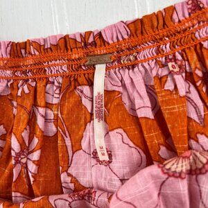 Free People Womens Floral Off Shoulder Top M Orange & Pink 100% Cotton