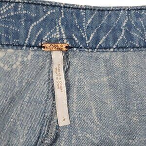Free People Women's Floral Print Light Wash Blue Denim Skirt 8
