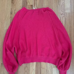 Viral Free People women’s pullover textured sweater, no stains and/or flaws. Slightly oversized and with slight cropped waistline, off the shoulder, bateau neckline and long raglan sleeves. Lightweight and so comfy! Beautiful hot pink color!