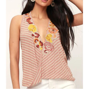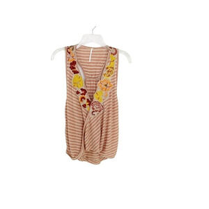 Free People Women's Frida Beige Striped Surplice Tank Top Small NWT