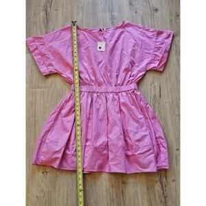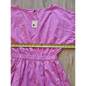 With its solid pink color, the dress exudes a soft and bohemian vibe, perfect for those who appreciate a touch of floral flair. The short puff sleeves add a playful element to the garment, while the machine-washable nature of the dress ensures effortless care. Whether you're looking to add a piece to your daytime ensemble or a sophisticated option for evening events, this dress is a versatile addition to any Free People enthusiast's collection. New With Tags.