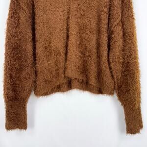 Free People Women's Fuzzy Pullover V-Neck Sweater Large Mocha Java