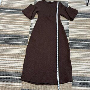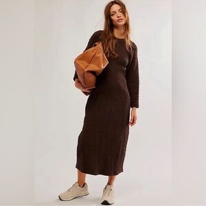 Free People Women's Gabby Long Sleeve Textured Cut Out Back Midi Dress Brown M/L