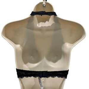 Free People Women's Galloon Lace Halter Bralette Black open back, no padding sheet mesh, sheer hook eye closure