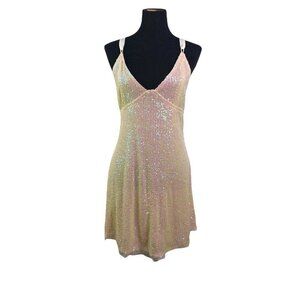 Free People Womens Gold Rush Minidress Icicle Pearl Combo SZ L